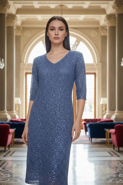 Büyük Beden Kadın Mavi File Dantel Abiye Elbise-4009FMV
