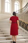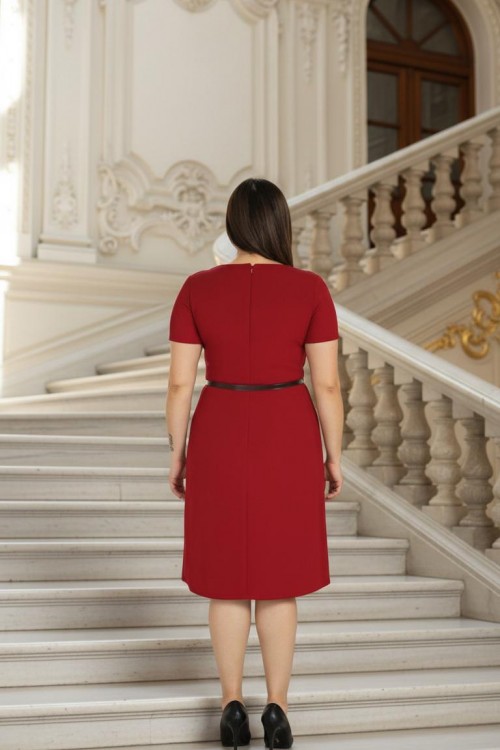 Nidya Moda Büyük Beden Kadın Bordo Ön Çift Yırtmaç Krep Abiye Elbise-4086B