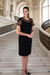 Nidya Moda Büyük Beden Kadın Dantel Kombini Siyah İnci Taş İşli Krep Abiye Elbise-4103S