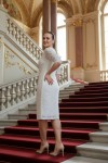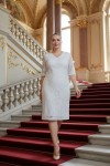Nidya Moda Büyük Beden Kadın Ekru Dantel Abiye Elbise-4161E