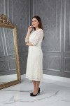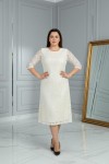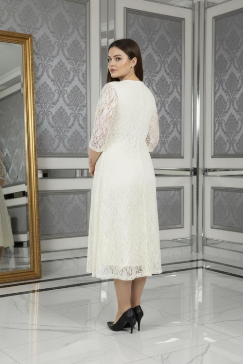 Nidya Moda Büyük Beden Kadın Ekru Dantel Kloş Abiye Elbise-4036E