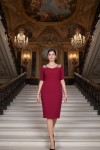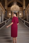 Nidya Moda Büyük Beden Kadın Fuşya Omuz Taşlı Şeritli Krep Abiye Elbise-4155AF