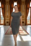 Nidya Moda Büyük Beden Kadın Gri Simli Örme Vako Abiye Elbise-4035AG