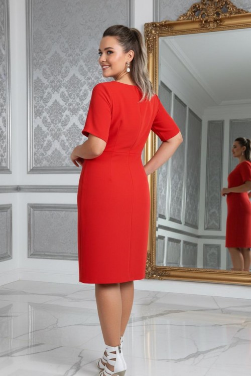 Nidya Moda Büyük Beden Kadın Kırmızı Omuz Beyaz Ay Kombinli Krep Abiye Elbise-4031K