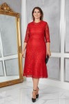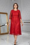 Nidya Moda Büyük Beden Kadın Kırmızı Sıfır Yaka Kloş Dantel Abiye Elbise-4036K