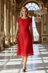 Nidya Moda Büyük Beden Kadın Kırmızı Vako Dantel Abiye Elbise-4035DK