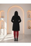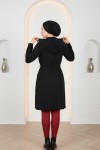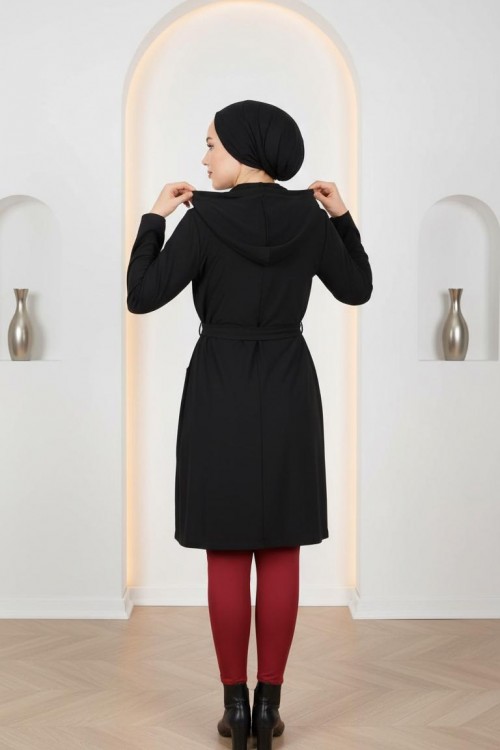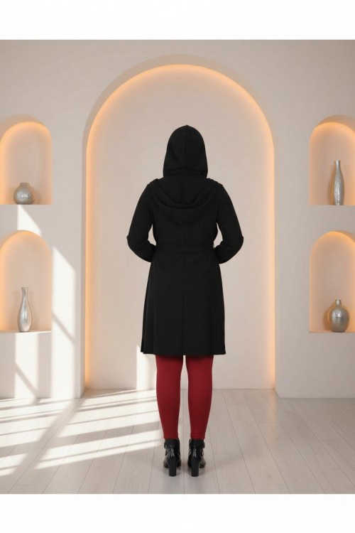 Nidya Moda Büyük Beden Kadın Lacivert Kapşonlu Kuşaklı Örme Spor Ceket-1016ÇL