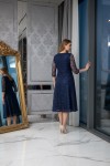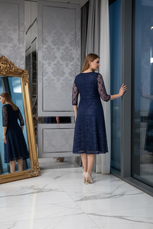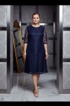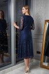 Nidya Moda Büyük Beden Kadın Lacivert Kloş Dantel Abiye Elbise-4036L