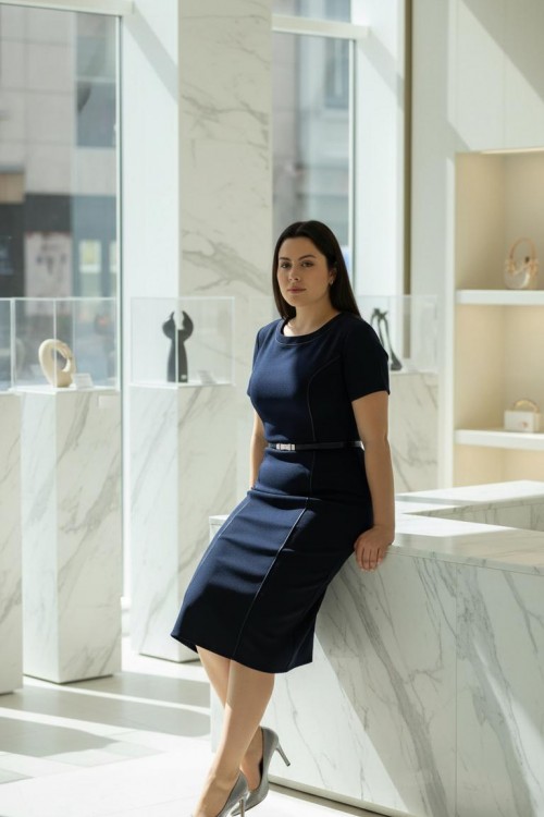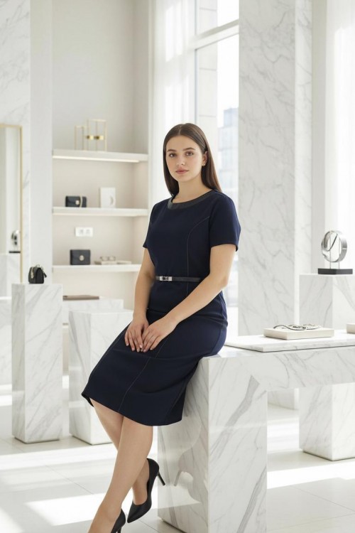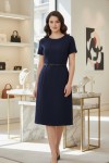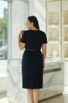 Nidya Moda Büyük Beden Kadın Lacivert Kuplar Deri Biyeli Krep Abiye Elbise-4084DL