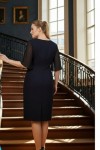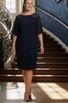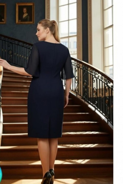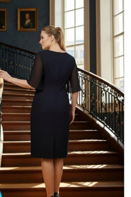 Nidya Moda Büyük Beden Kadın Lacivert Omuz Dantel Şifon Kol Taş İşli Yaka Krep Abiye Elbise-4066L