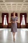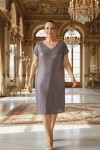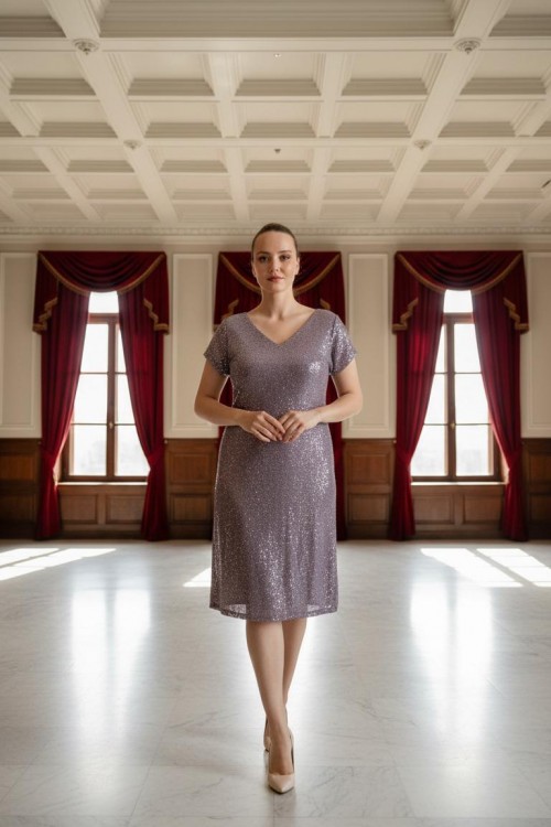 Nidya Moda Büyük Beden Kadın Lila Payet Desen V Yaka Vako Abiye Elbise-4035PLL