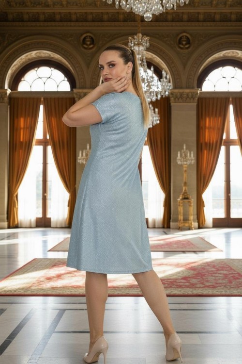 Nidya Moda Büyük Beden Kadın Mint Simli Kaplama Dantel V Yaka Vako Abiye Elbise-4035LMT