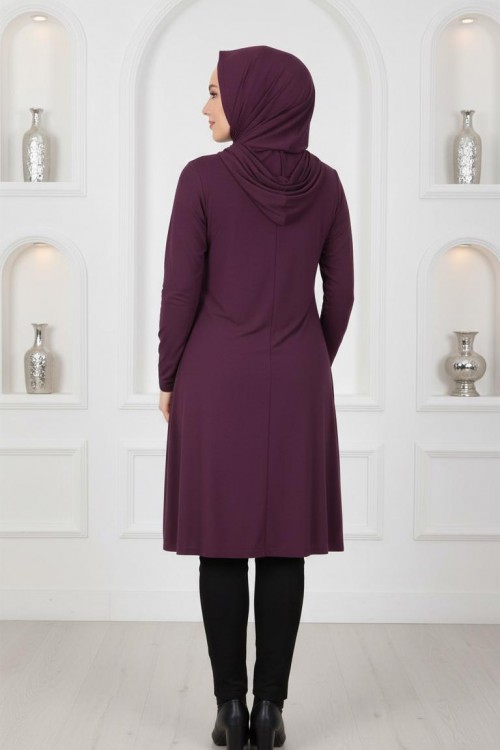 Nidya Moda Büyük Beden Kadın Mürdüm Kapüşonlu Kuşaklı Spor Ceket-1016SM