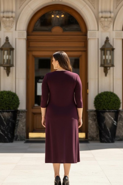 Nidya Moda Büyük Beden Kadın Mürdüm Renkli Taşlı Yaka Sandy Abiye Elbise-4091M