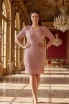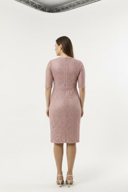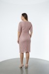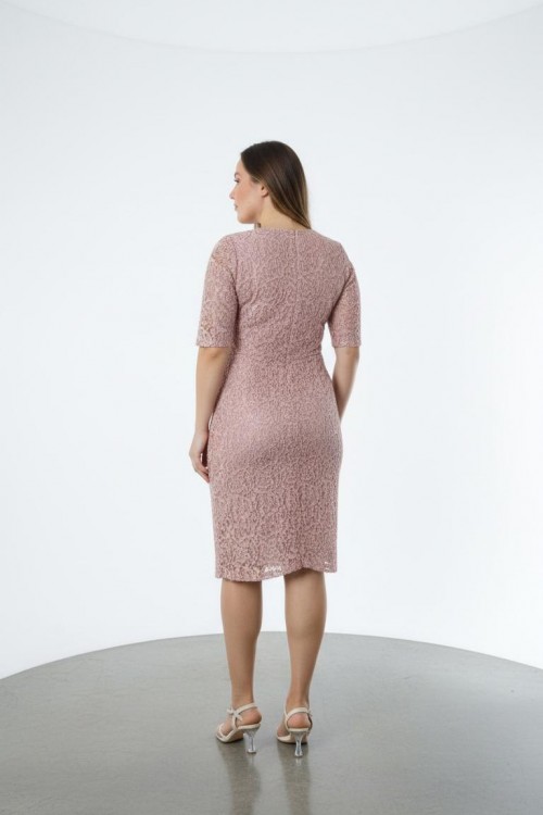 Nidya Moda Büyük Beden Kadın Pembe File Dantel Abiye Elbise-4009FPE