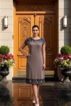 Nidya Moda Büyük Beden Kadın Roba Etek Ucu Vizon Pullu Payetli Örme Abiye Elbise 4117V
