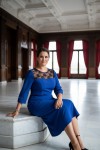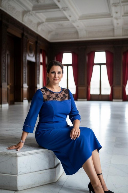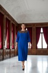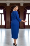 Nidya Moda Büyük Beden Kadın Saks Roba Dantel Kol Taş İşli Sandy Abiye Elbise-4025ASX
