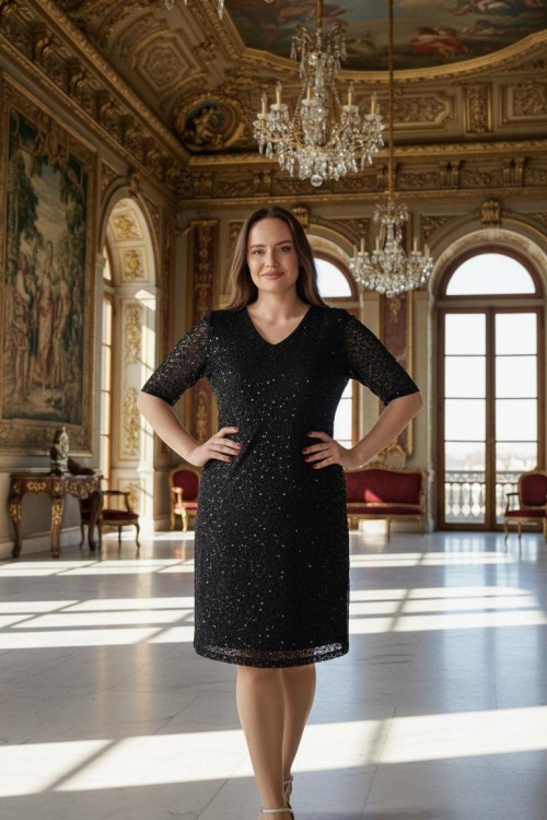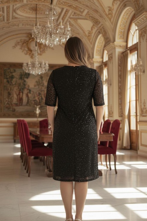 Nidya Moda Büyük Beden Kadın Siyah File Dantel Abiye Elbise-4009FS