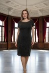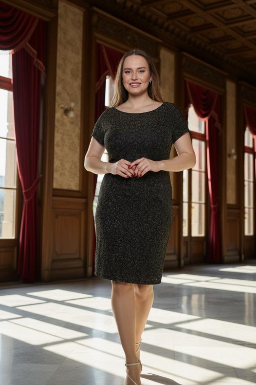 Nidya Moda Büyük Beden Kadın Siyah Gold Gül Baskı Vako Abiye Elbise-4035CSG
