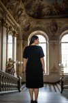 Nidya Moda Büyük Beden kadın Siyah Kol ve Yaka Ayraç Kesim Krep Abiye Elbise-4067S