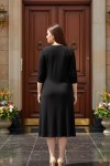 Nidya Moda Büyük Beden Kadın Siyah Lazer Metal Aksesuarlı Yaka Sandy Abiye Elbise-4081S
