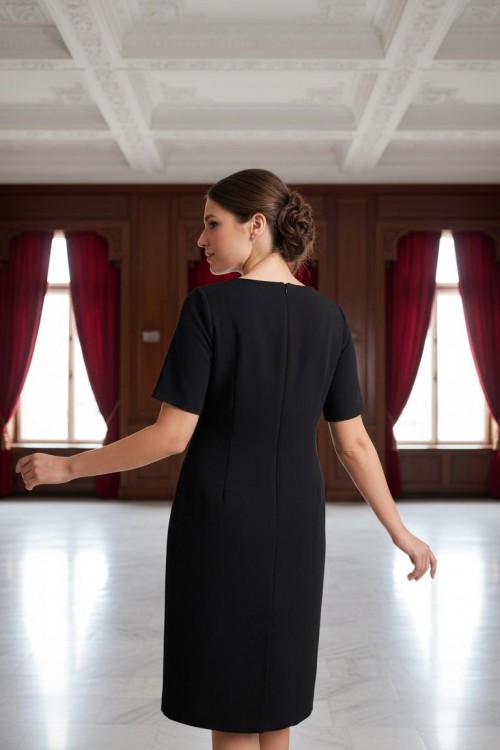 Nidya Moda Büyük Beden Kadın Siyah Omuz Kafes Kombinli Krep Abiye Elbise-4152S