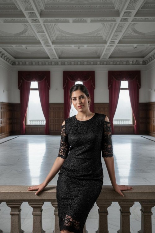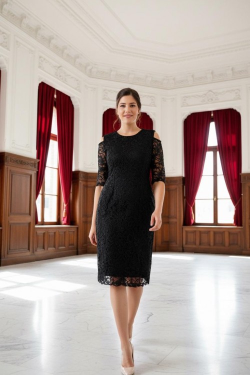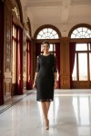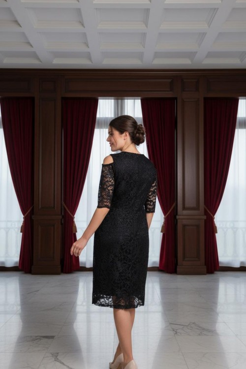 Nidya Moda Büyük Beden Kadın Siyah Omzu Pencereli Dantel Abiye Elbise-4146S