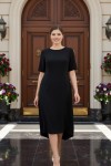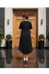 Nidya Moda Büyük Beden Kadın Siyah Ön Kısa Arka Uzun Krep Abiye Elbise-4151S
