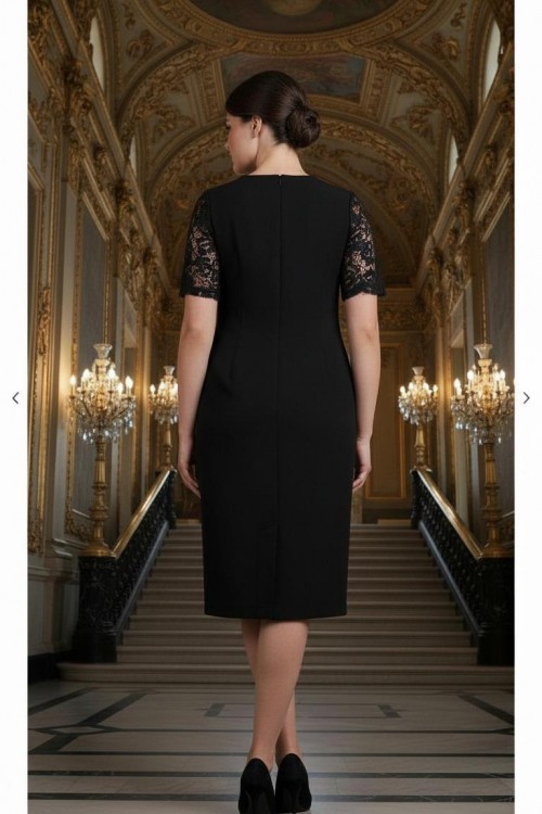 Nidya Moda Büyük Beden Kadın Siyah Roba Kol Sarmal Dantel Kombin Abiye Elbise-4160S
