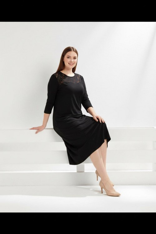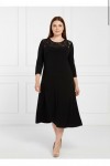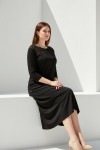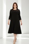Nidya Moda Büyük Beden Kadın Siyah Roba Manşet Dantelli Sandy Abiye Elbise-4078DS
