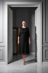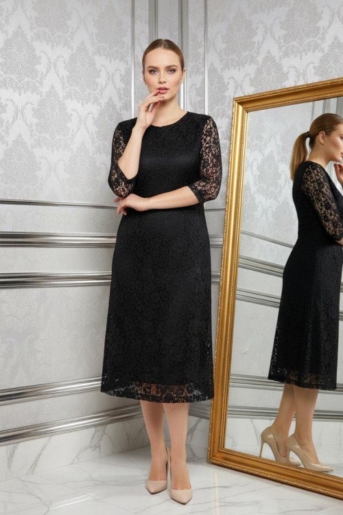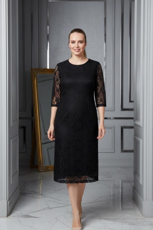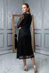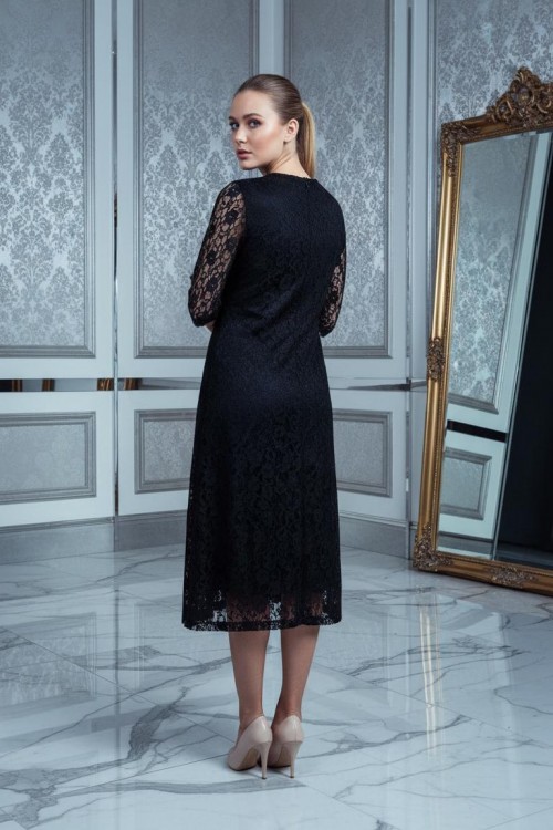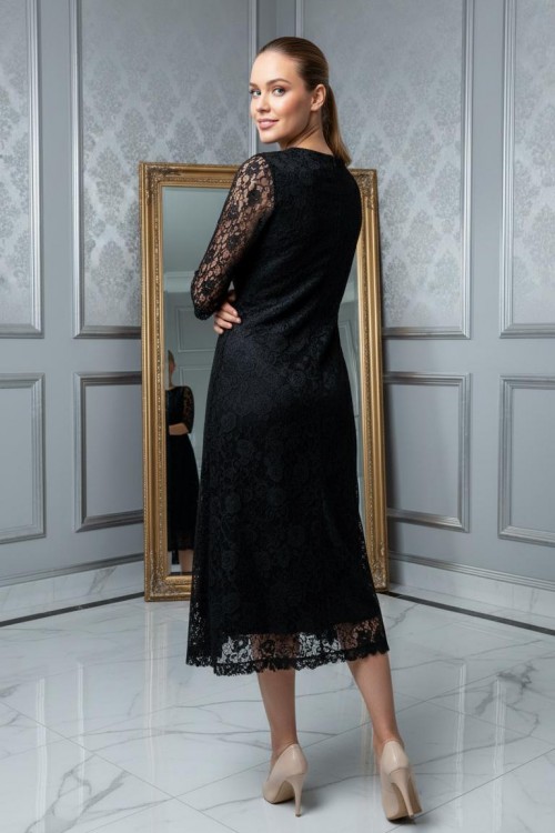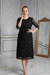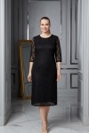 Nidya Moda Büyük Beden Kadın Siyah Sıfır Yaka Kloş Dantel Abiye Elbise-4036S