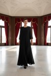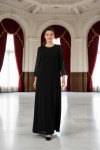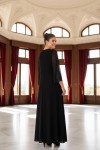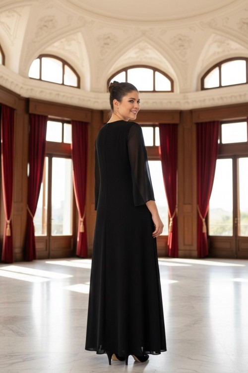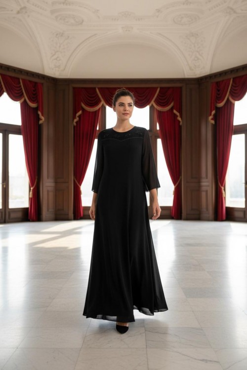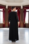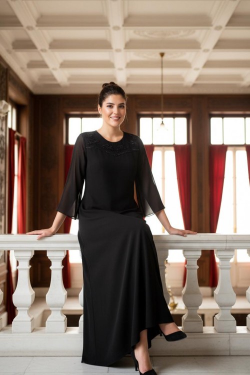 Nidya Moda Büyük Beden Kadın Siyah Şifon Kol Roba Tül Taşlı Motif Uzun Sandy Abiye Elbise-4115S
