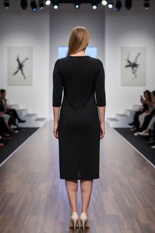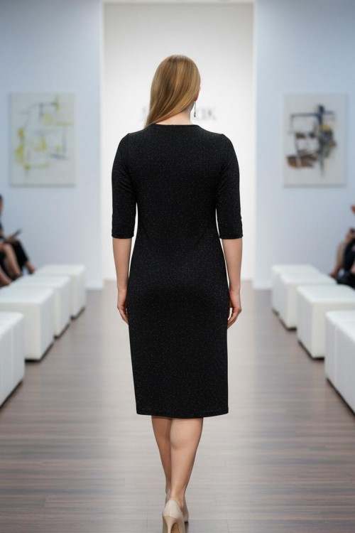 Nidya Moda Büyük Beden Kadın Siyah Simli Örme V Yaka Abiye Elbise-4009RS