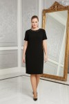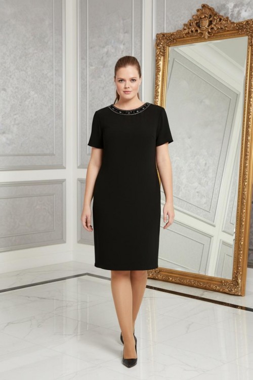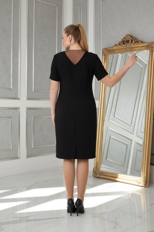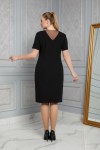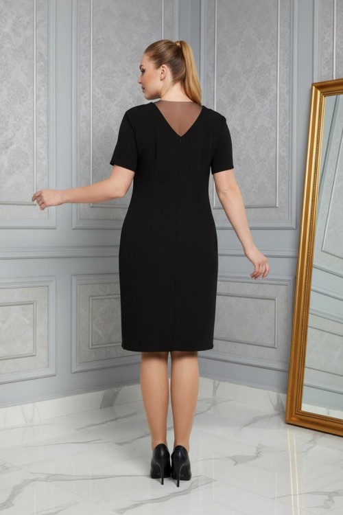 Nidya Moda Büyük Beden Kadın Siyah Sırt V Tül Kombin Taş İşli Krep Abiye Elbise-4068S