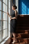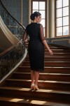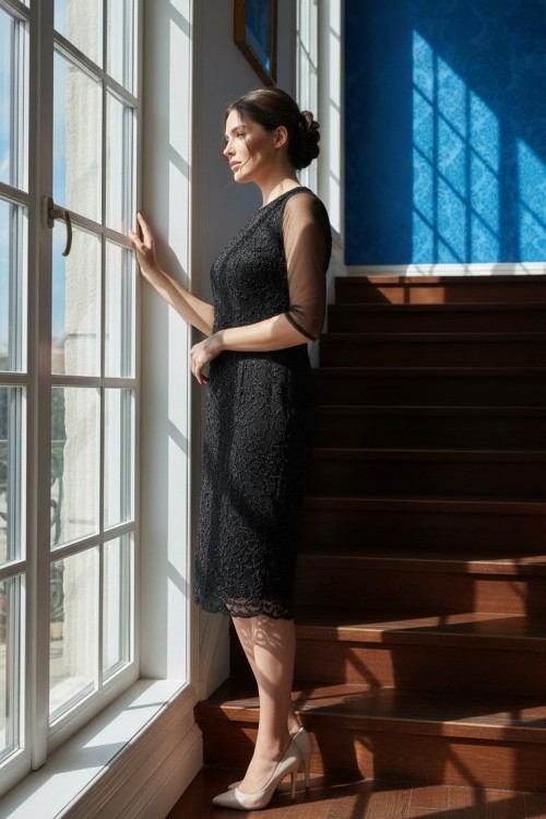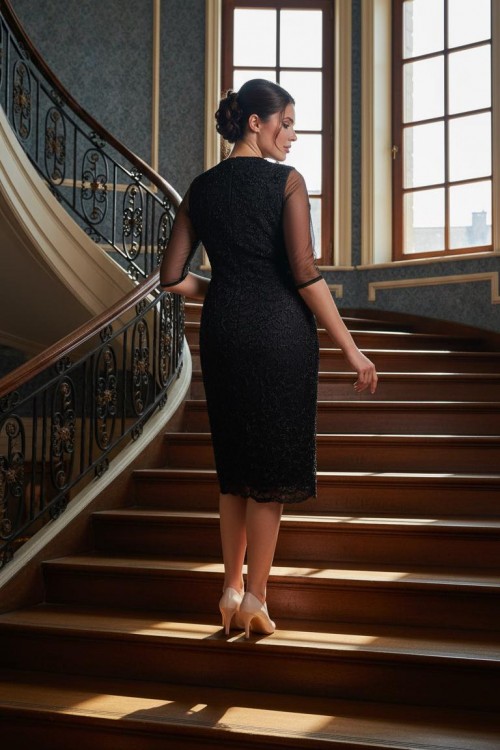 Nidya Moda Büyük Beden Kadın Siyah Tül Kol Sarmal Simli Dantel Abiye Elbise-4147S
