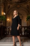 Nidya Moda Büyük Beden Kadın Siyah V Boncuk Yaka Taşlı Sandy Abiye Elbise-4039S