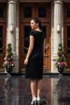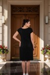 Nidya Moda Büyük Beden Kadın Siyah Vako Simli Dantel Abiye Elbise-4035YS