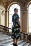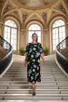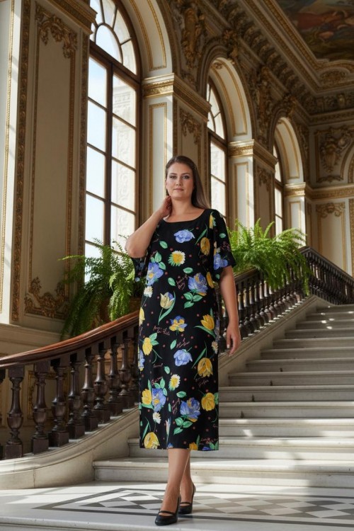 Nidya Moda Büyük Beden Kadın Siyah Volan Kol Çiçekli Vual Elbise-4026ÇS