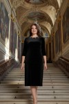 Nidya Moda Büyük Beden Kadın Siyah Yaka İnci Işli Kadife Abiye Elbise-4072s