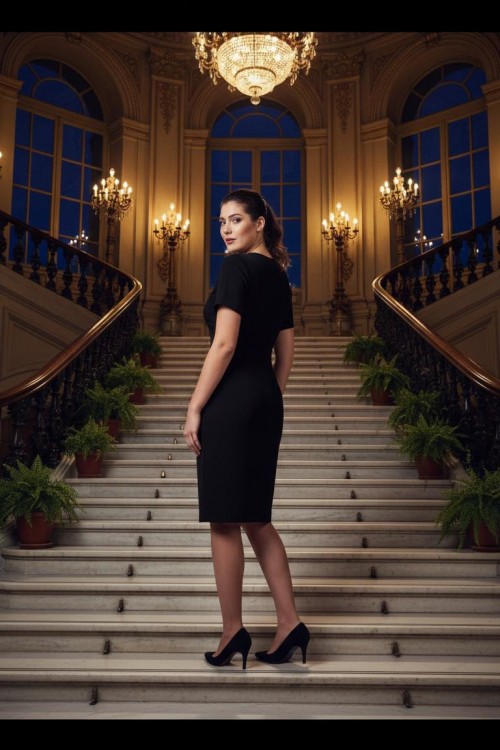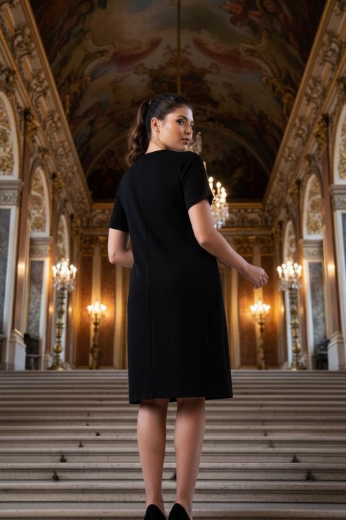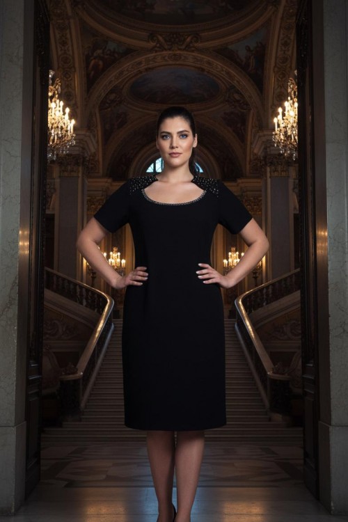 Nidya Moda Büyük Beden Kadın Siyah Yaka Omuz Taş İşli Krep Abiye Elbise-4104S