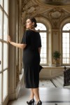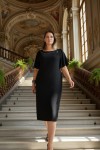 Nidya Moda Büyük Beden Kadın Siyah Yaka Taşlı Aksesuarlı Sandy Abiye Elbise-4026S