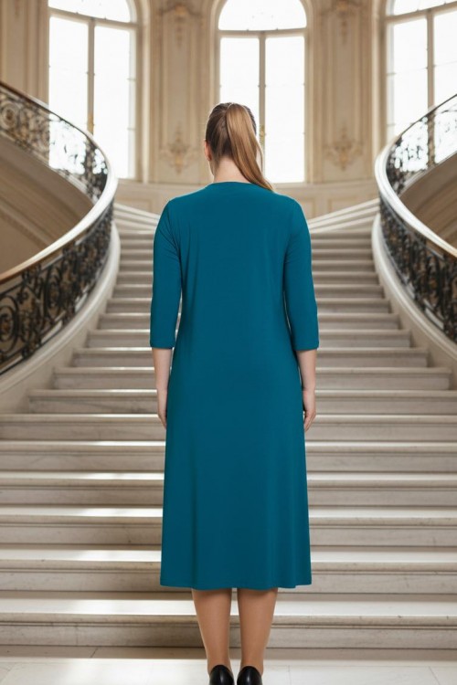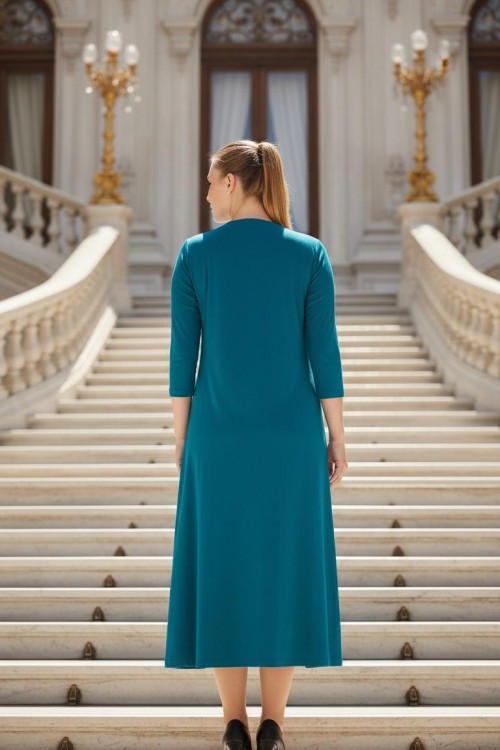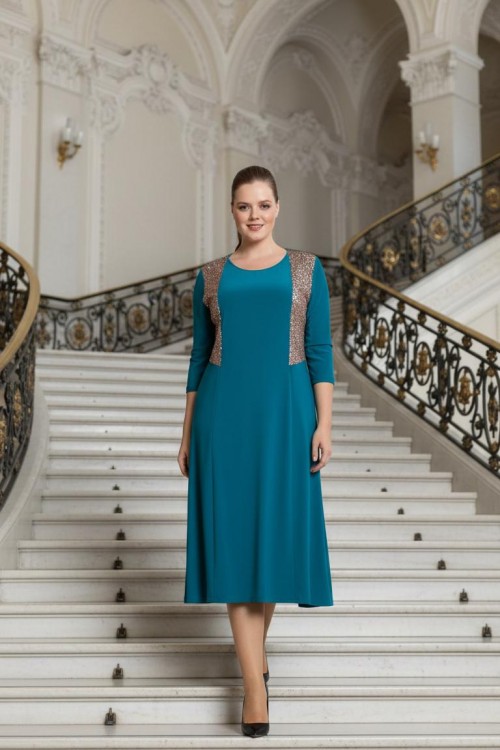 Nidya Moda Büyük Beden Kadın Turkuaz Kupları Pullu Payet Kombin Sandy Abiye Elbise-4060T
