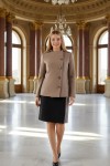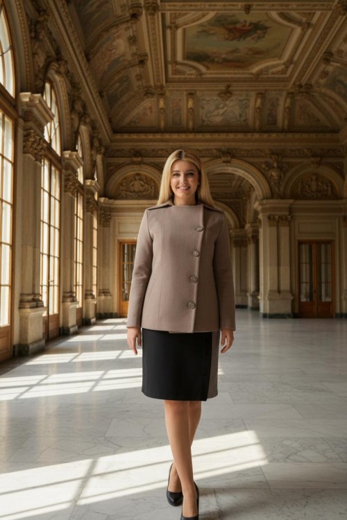 Nidya Moda Büyük Beden Kadın Vizon Yandan Düğmeli Kısa Kaban-5009V
