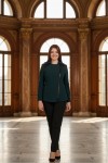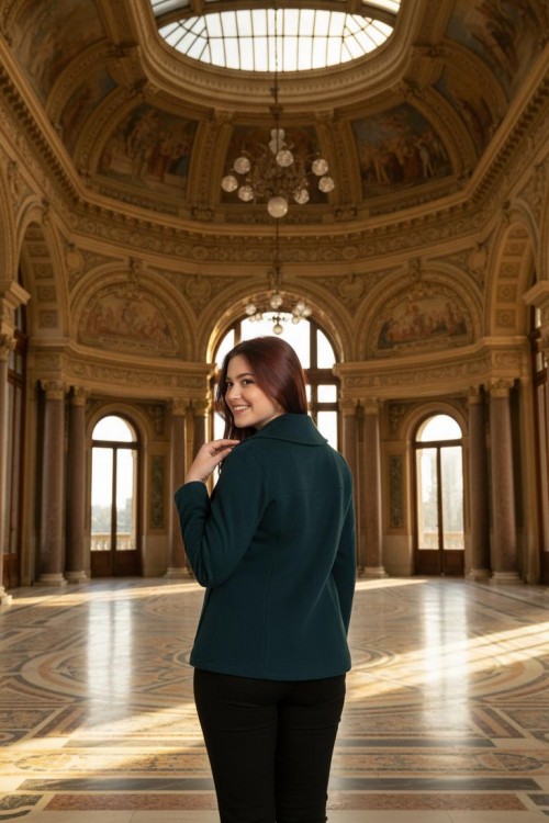 Nidya Moda Büyük Beden Kadın Yeşil Omuz Deri Şeritli Kısa Kaban-5008Y