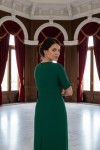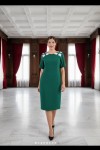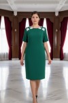 Nidya Moda Büyük Beden Kadın Yeşil Omuz Kafes Beyaz Kombinli Krep Abiye Elbise-4152Y