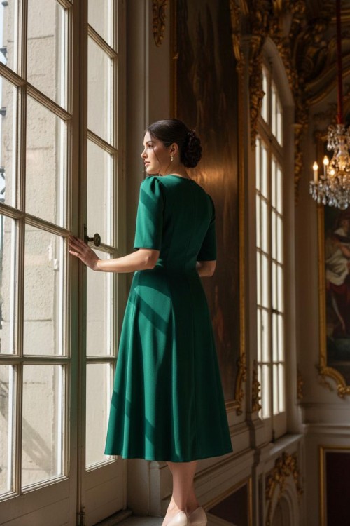Nidya Moda Büyük Beden Kadın Yeşil Omuz Pullu Payet Kombinli Krep Abiye Elbise-4159Y