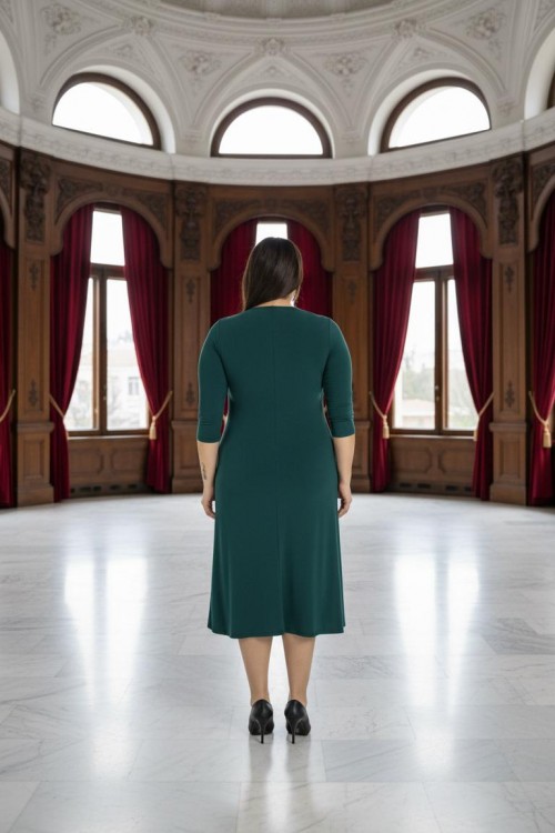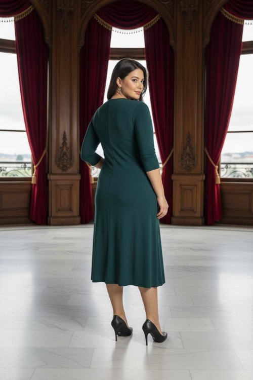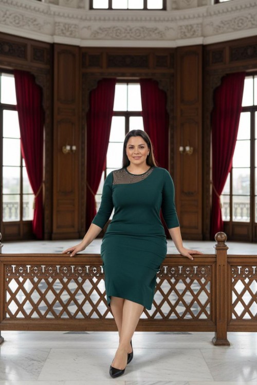 Nidya Moda Büyük Beden Kadın Yeşil Roba Tül Taşlı Sandy Abiye Elbise-4089Y