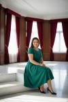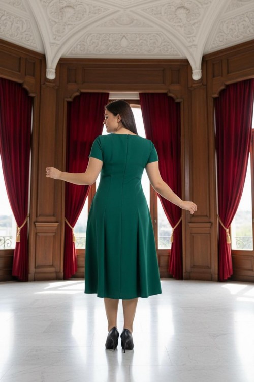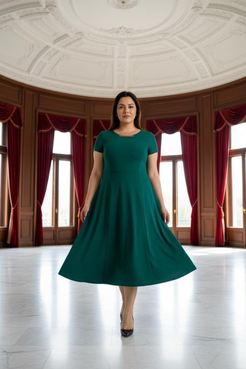 Nidya Moda Büyük Beden Kadın Yeşil Sem Yaka Taşlı Krep Abiye Elbise -4088Y
