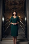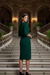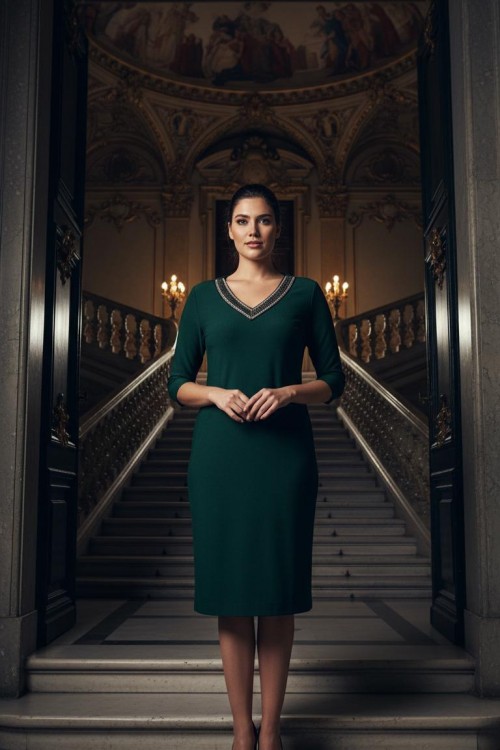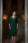 Nidya Moda Büyük Beden Kadın Yeşil V Taşlı Yaka Sandy Abiye Elbise 4039Y