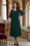 Nidya Moda Büyük Beden Kadın Yeşil V Taşlı Yaka Şifon Kol Sandy Abiye Elbise-4053Y